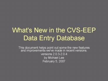 What's New in the CVS-EEP Data Entry Database PowerPoint PPT Presentation