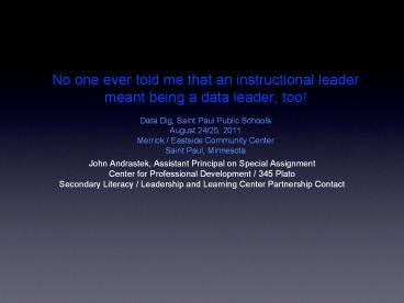 <Notice: Removed> No one ever told me that an instructional leader meant being a data leader, too! Data Dig, Saint Paul Public Schools August 24/25, 2011 Merrick / Eastside Community Center Saint Paul, Minnesota PowerPoint PPT Presentation