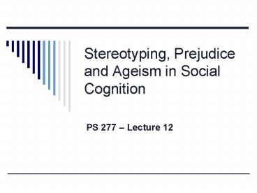 Title: Stereotyping, Prejudice and Ageism in Social Cognition