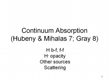 Continuum Absorption (Hubeny PowerPoint PPT Presentation