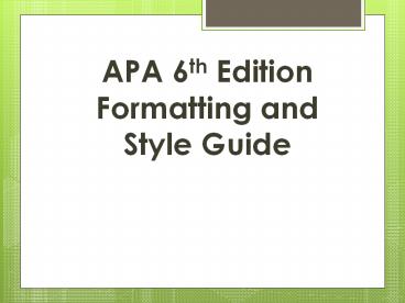 <Notice: Removed> APA 6th Edition Formatting and Style Guide PowerPoint PPT Presentation