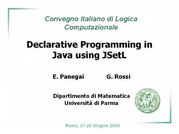 <Notice: Removed> Declarative Programming in Java using JSetL PowerPoint PPT Presentation