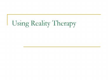 Using Reality Therapy PowerPoint PPT Presentation