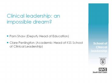 Title: Clinical leadership: an impossible dream?