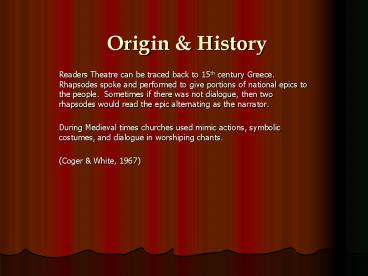 • Readers Theatre can be traced back to 15th