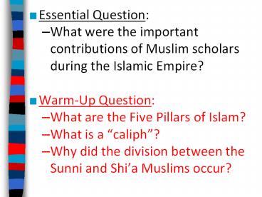 Islamic Achievements Muslims during the Islamic Empire developed innovations that are still used today ... A famous example is A Thousand and One Arabian Nights . – PowerPoint PPT presentation