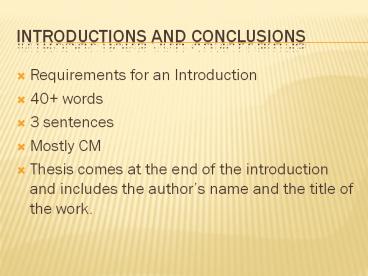 Introductions and Conclusions PowerPoint PPT Presentation