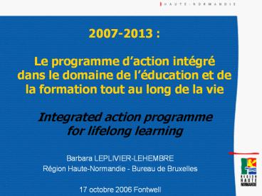 <Notice: Removed> 2007-2013 : Le programme d PowerPoint PPT Presentation