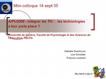 AIPU2005 - Intégrer les TIC   les technologies