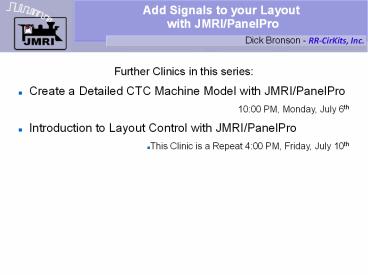 JMRI/PanelPro - This Clinic is a Repeat 400 PM, Friday, July