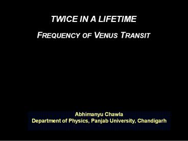 TWICE IN A LIFETIME Frequency of Venus Transit