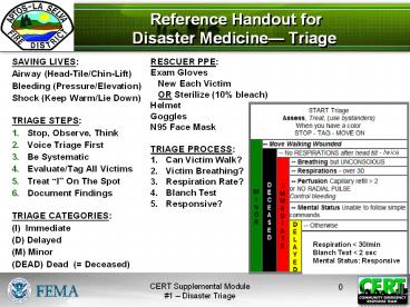 Reference Handout for Disaster Medicine PowerPoint PPT Presentation