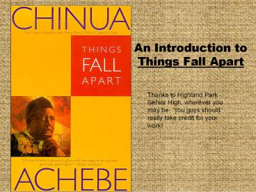 An Introduction to Things Fall Apart PowerPoint PPT Presentation