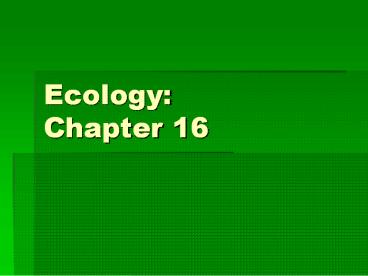 Ecology: Chapter 16 PowerPoint PPT Presentation