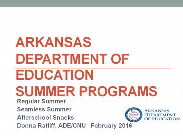 <Notice: Removed> ARKANSAS DEPARTMENT OF EDUCATION Summer Programs PowerPoint PPT Presentation