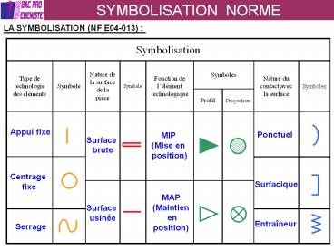 SYMBOLISATION NORME PowerPoint PPT Presentation