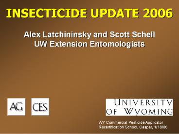 1 INSECTICIDE UPDATE 2006 Alex Latchininsky and