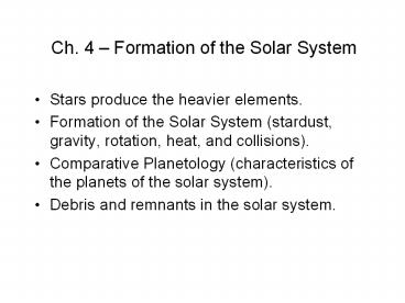 rotation, heat, and collisions). - Comparative Planetology (characteristics of the