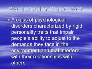 PERSONALITY DISORDERS PowerPoint PPT Presentation