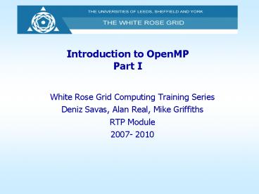 <Notice: Removed> Introduction to OpenMP Part I PowerPoint PPT Presentation