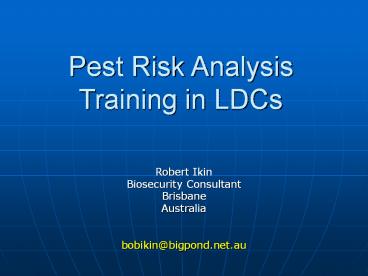 Title: Pest Risk Analysis Training in LDCs