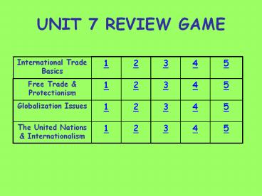<Notice: Removed> UNIT 7 REVIEW GAME PowerPoint PPT Presentation