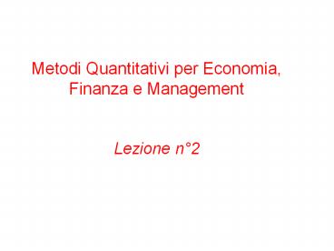 Title: Metodi Quantitativi per Economia, Finanza e Management Lezione n