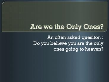 1Are we the Only Ones?