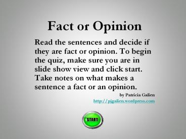 what makes a sentence a fact or an opinion. - by Patricia Galien