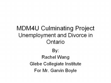 Title: MDM4U Culminating Project Unemployment and Divorce in Ontario