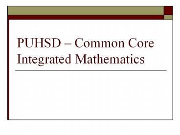1PUHSD Common Core Integrated Mathematics