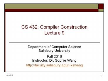 <Notice: Removed> CS 432: Compiler Construction Lecture 9 PowerPoint PPT Presentation