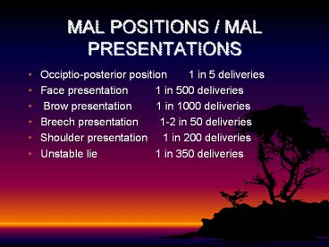 Title: MAL POSITIONS / MAL PRESENTATIONS