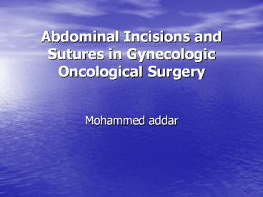 Title: Abdominal Incisions and Sutures in Gynecologic Oncological Surgery