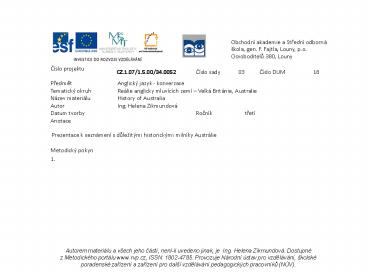 Název materiálu History of Australia History of Australia History of Australia History of Australia History of Australia History of Australia History of Australia