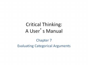 <Notice: Removed> Critical Thinking: A User PowerPoint PPT Presentation