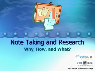Title: Note Taking and Research