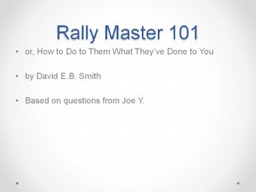 3 rally masters -- 8-12 hr, 1 day, 3-5 day.