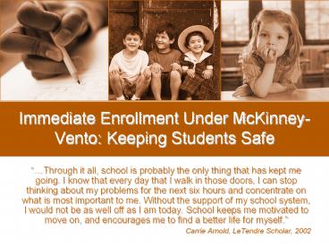 Title: Immediate Enrollment Under McKinney-Vento: Keeping Students Safe