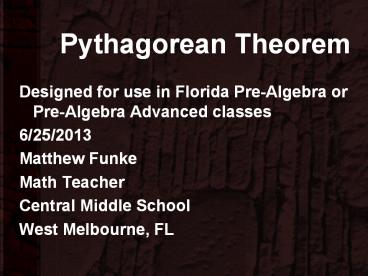 <Notice: Removed> Pythagorean Theorem PowerPoint PPT Presentation