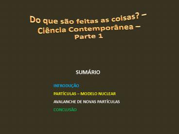 SUMÁRIO INTRODUÇÃO PARTÍCULAS MODELO