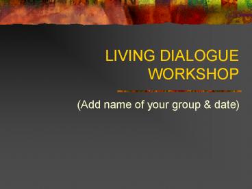LIVING DIALOGUE WORKSHOP PowerPoint PPT Presentation