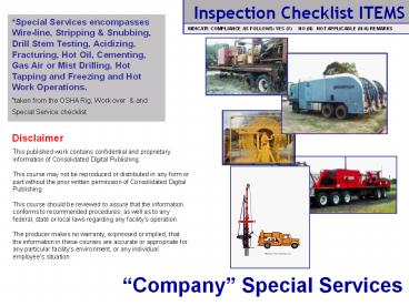 Rig, Work over and Special Service checklist