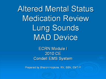 Title: Altered Mental Status Medication Review Lung Sounds MAD Device