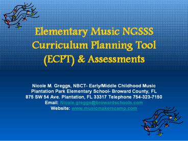 Title: Elementary Music NGSSS Curriculum Planning Tool (ECPT)
