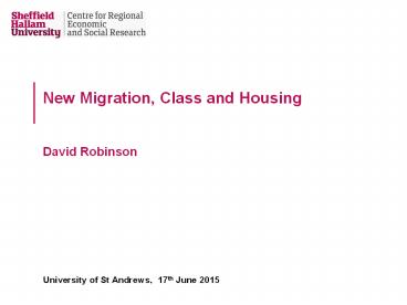<Notice: Removed> New Migration, Class and Housing David Robinson PowerPoint PPT Presentation