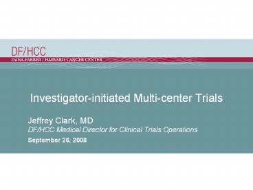 Multi-center Trials - See DF/HCC website under QACT ? Multi-center