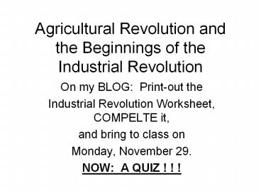 Title: Agricultural Revolution and the Beginnings of the Industrial Revolution