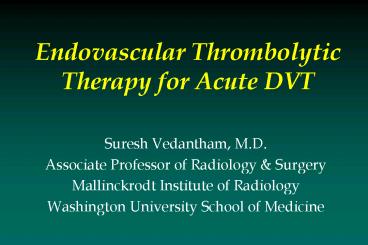 Title: Endovascular Thrombolytic Therapy for Acute DVT
