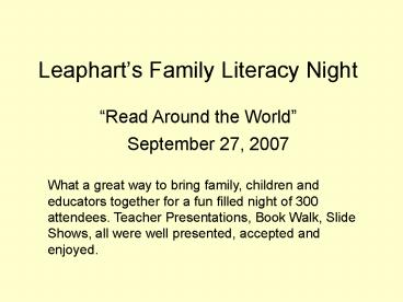 Leapharts Family Literacy Night PowerPoint PPT Presentation